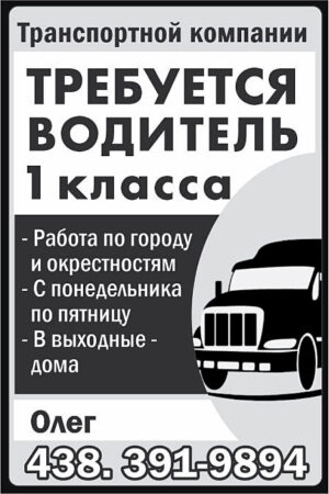 ТРЕБУЕТСЯ ВОДИТЕЛЬ I класса