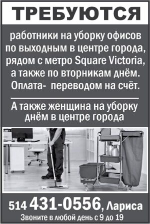 Требуются работники на уборку офисов по выходным в центре города, рядом с…