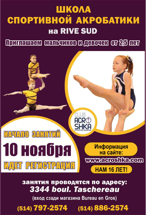 Для регистрации звоните (514) 685-3729 или (514)318-7799