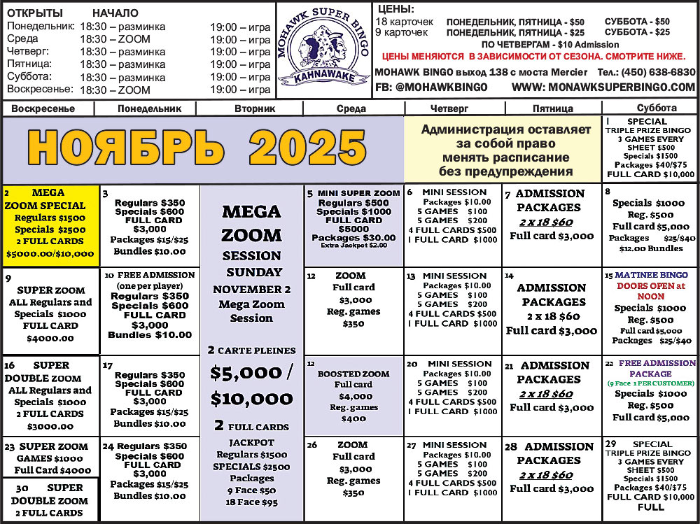 18 карточек ПОНЕДЕЛЬНИК, ПЯТНИЦА — $50 • СУББОТА — $50