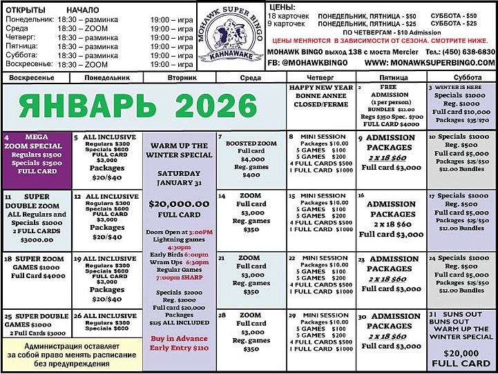 Администрация оставляет за собой право менять расписание без предупреждения