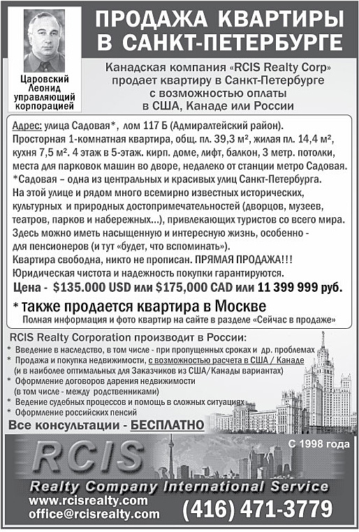ПРОДАЖА КВАРТИРЫ В САНКТ-ПЕТЕРБУРГЕ