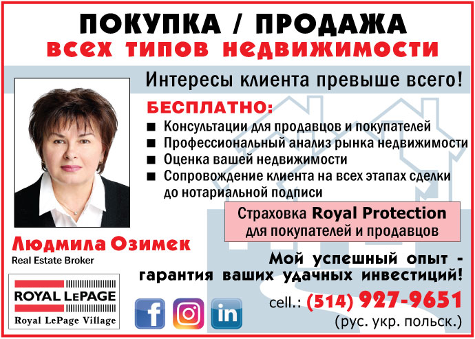 Телефон: cell.: (514) 927-9651 (рус. укр. польск.)