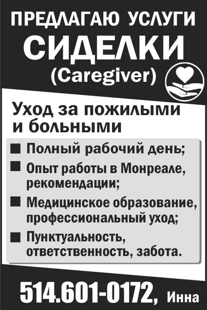 ПРЕДЛАГАЮ УСЛУГИ СИДЕЛКИ (Caregiver)