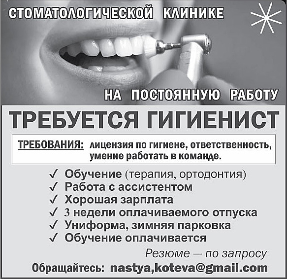 ТРЕБУЕТСЯ ГИГИЕНИСТ