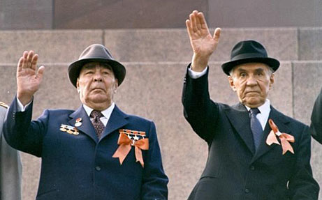 Леонид Брежнев и Алексей Косыгин на трибуне Мавзолея, 1 мая 1980, г. Москва