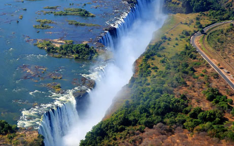 Ливингстон даёт водопаду имя королевы Виктории. Ширина водопада около 1800 м, высота 120 м. На снимке хорошо виден остров, с которого Ливингстон смотрел на водопад