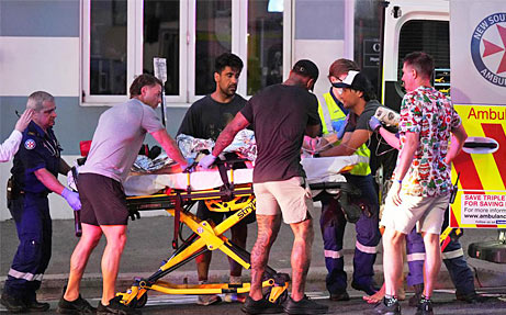 Спасатели вывозят раненых в результате стрельбы на пляже в Сиднее