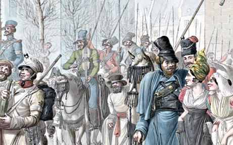 Оккупация Парижа в 1814. Казаки проходят через город