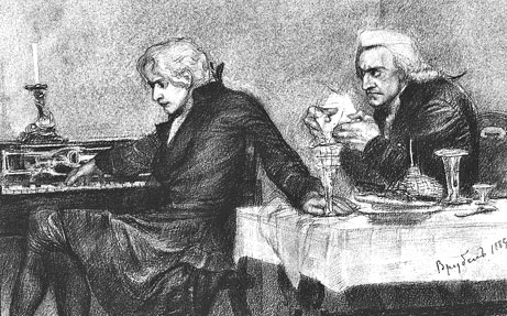 «Сальери всыпает яд в бокал Моцарта». Рисунок Михаила Александровича Врубеля