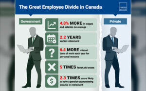 Согласно новому отчету Международного института Фрейзер (Fraser Institute), сотрудники канадского государственного сектора значительно превосходят своих коллег из частного сектора по уровню участия в пенсионных программах с гарантированными выплатами (defined benefit, DB). Эта разница в участии и условиях пенсионного обеспечения говорит о существующих преимуществах государственных служащих, а также о различиях в уровне социальной защиты, предоставляемой в двух секторах.