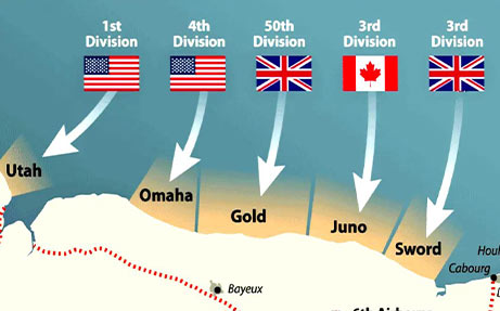 Американские, английские и канадские десантные части штурмовали каждый свой участок побережья