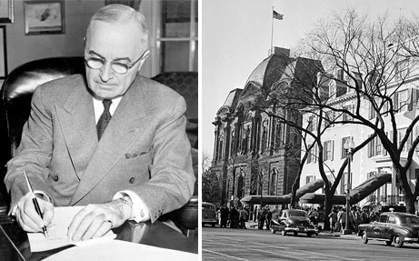 Гарри Трумэн (1884-1972), 33-й президент США в 1945-53. Снимок сделан в том самом 1950 году. Дом, в котором пытались убить Трумэна.