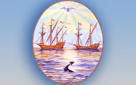 Герб Буэнос-Айреса. Поскольку город основан мореплавателями, то ничего удивительного, что на гербе изображены парусники, но вот плывущий среди волн якорь – это оригинально. Хотя, вспоминается, и в России где-то «по реке плывёт топор из города Чугуева»…