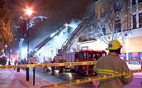 Как сообщил начальник сектора пожарной службы Монреаля (Montreal fire department section chief) Андре Лафламм (André Laflamme), пожар начался около 2 часов ночи в трёхэтажном здании, расположенном на улице Кресент (Crescent Street), поблизости от перекрёстка с бульваром Рене-Левек (René-Lévesque Boulevard).