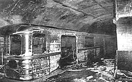 От состава остались только обгоревшие вагоны. Жар в туннеле был такой, что колёса приварились к рельсам