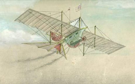 Между прочим, первый самолёт, названный «воздушной каретой», был запатентован ещё в 1842 году в Англии. Конструкция вполне разумная, но реализована не была, а осталась в истории только как дерзкая идея